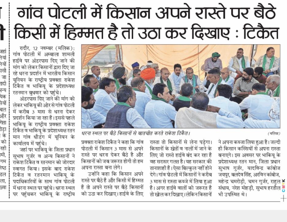भारतीय किसान यूनियन देश में तब से तैयार हुआ है जब से समय के साथ बारी-बारी से किसानों की समस्याओं का समाधान किया गया है। एमएसपी बढ़ाने की किसानों की मांग को समय से पूरा किया गया। देश के किसान को नीति के तहत कर्ज मुक्त होना चाहिए ताकि वह फिर से कर्ज में न फंसे, इसमें आयोग मदद करेगा। किसान भाई रोज का जरूरी सामान किसानों और मजदूरों से ही खरीदें, बड़े व्यापारियों से नहीं, किसान ही किसान को खुशहाल करेगा।